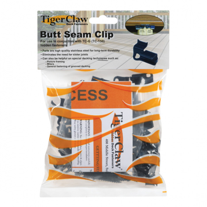 Stainless steel clip used in conjunction with TC-G. Allows for single joist butt seam installation.