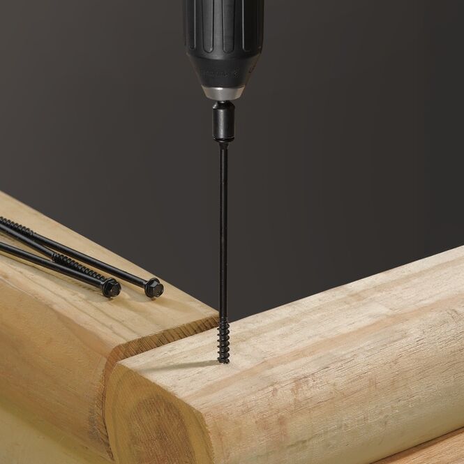 Installs in a fraction of the time versus traditional lag bolts with fewer steps and less effort. Its sharp point and aggressive threads zip right into the densest woods.