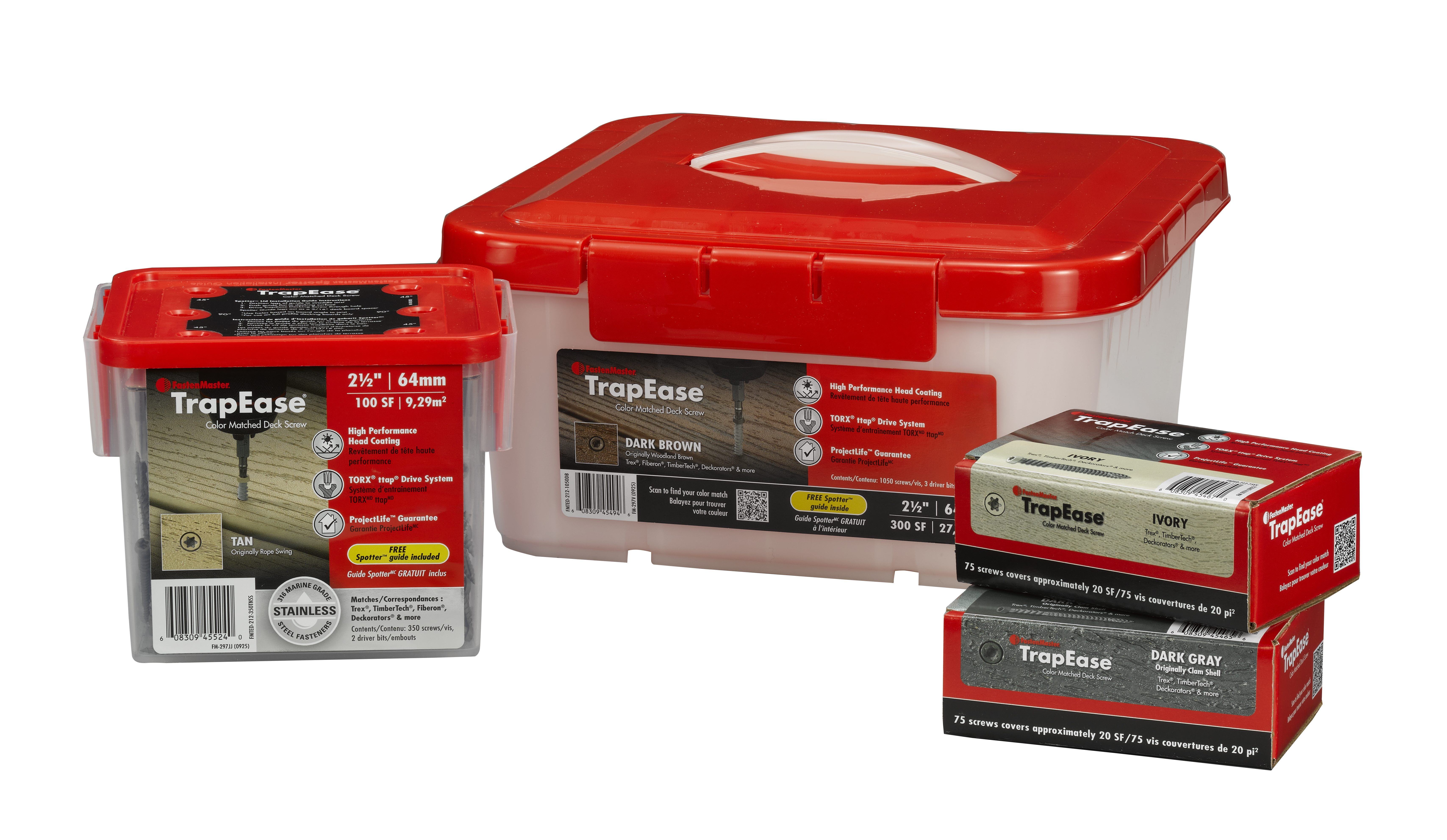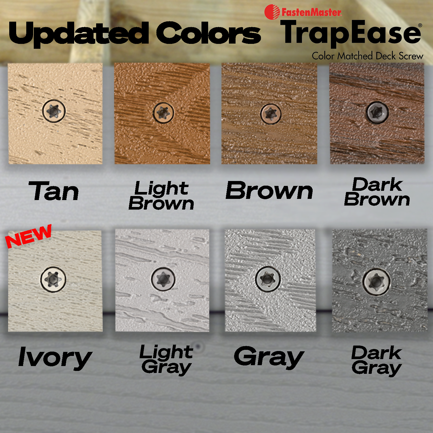 TrapEase® Color Matched Deck Screws create a beautiful color matched finish in leading deck board brands.