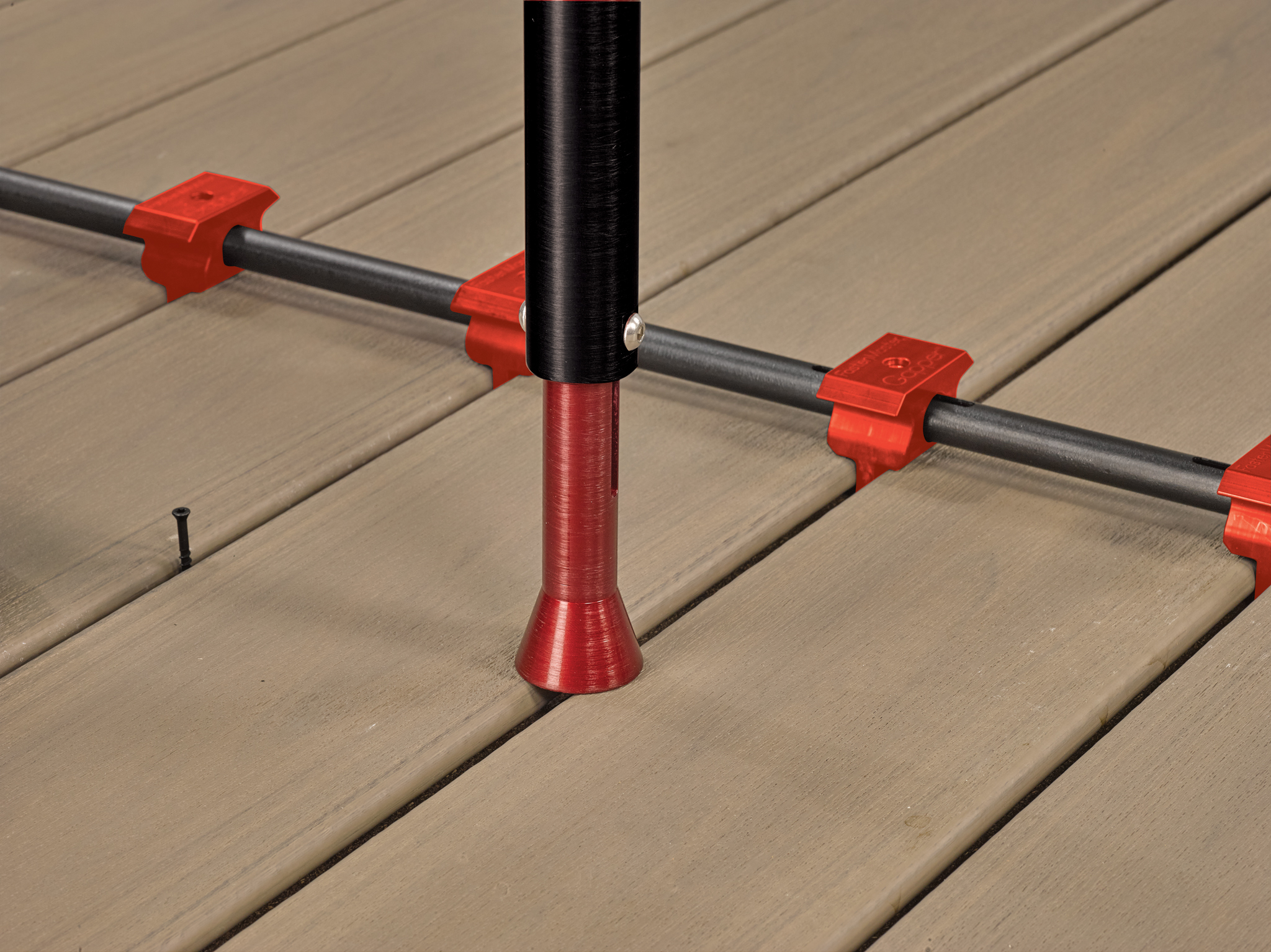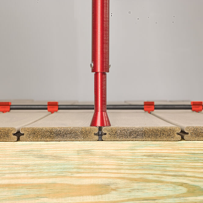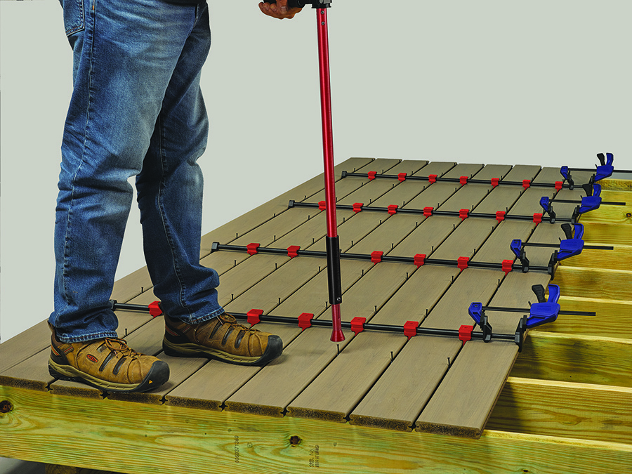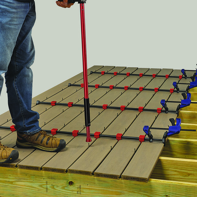 ZipStick™ is FastenMaster’s ergonomic, stand-up installation tool designed to quickly and precisely drive ZipClips from a comfortable standing position, reducing fatigue while speeding up hidden deck fastening.